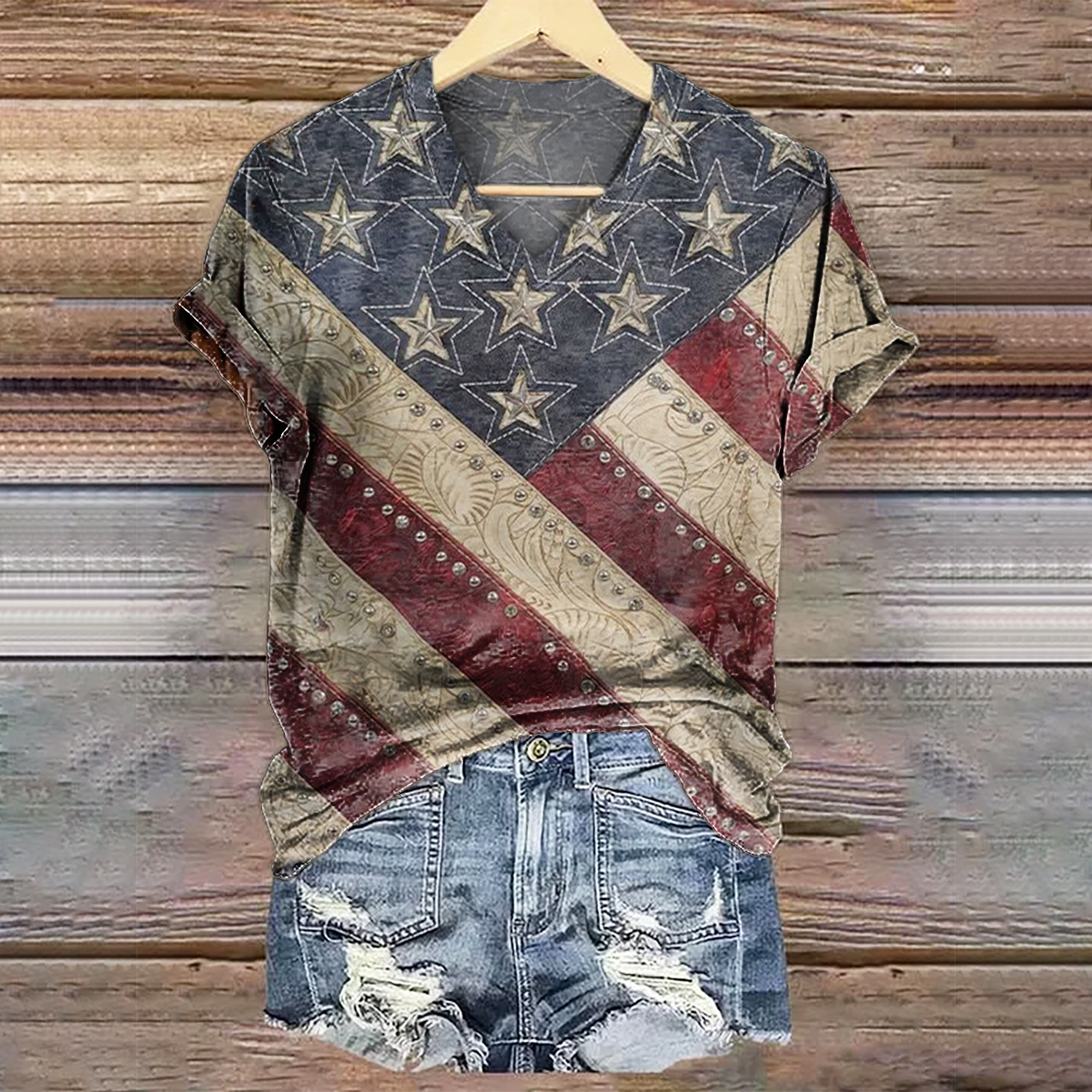 Women's Pentagram Art Print V-Neck Casual T-Shirt