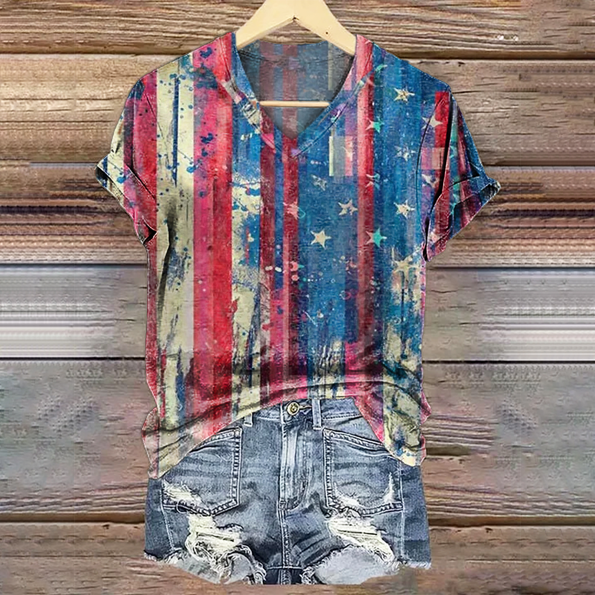 Women's Pentagram Art Print V-Neck Casual T-Shirt