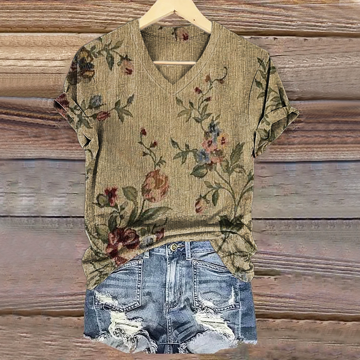 Women's Vintage Floral Art Print V-neck Casual T-Shirt