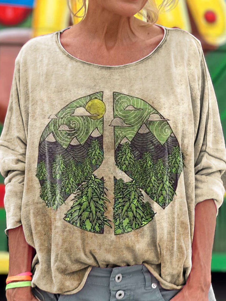 Women's Vintage Hippie Art Print Casual Long Sleeve T-shirt
